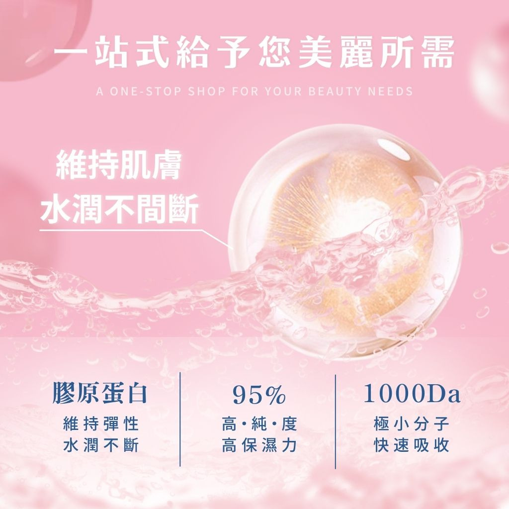 高效保濕,搭配膠原蛋白提升肌膚鎖水力,水嫩由內而外