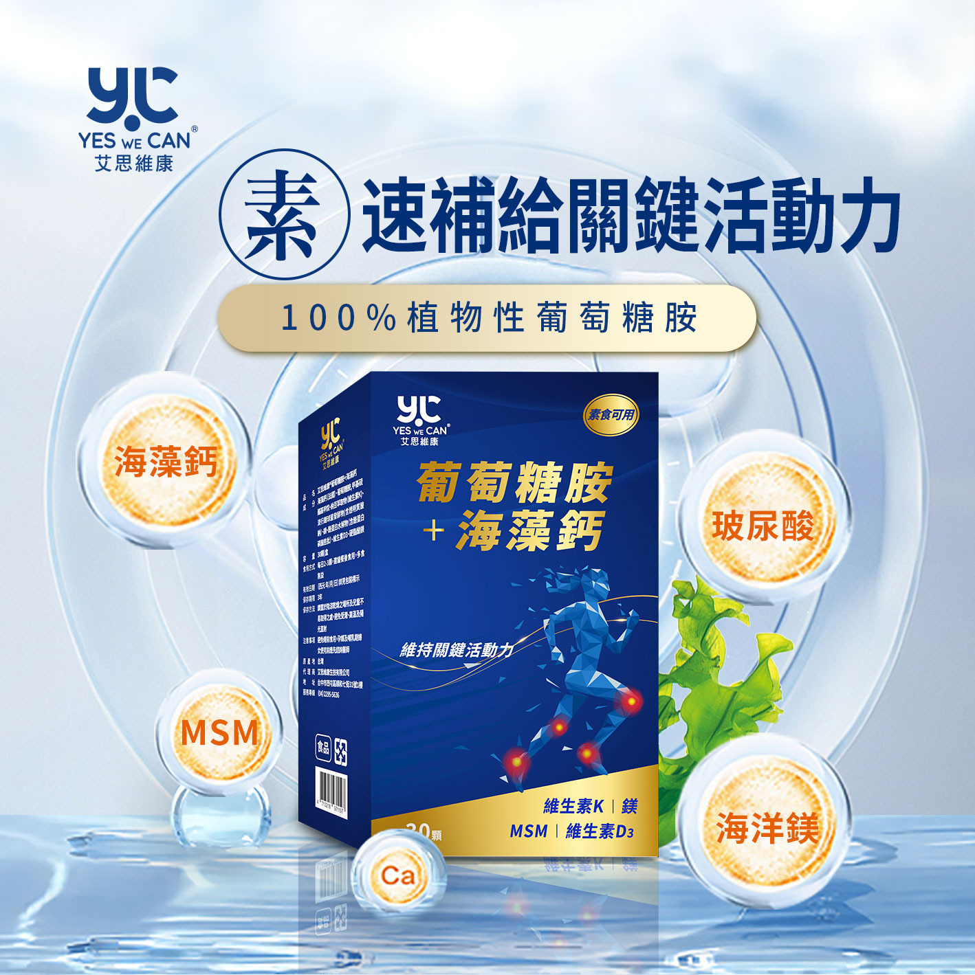 靈活不卡關 7大配方補給|植物葡萄糖胺+海藻鈣+MSM|補鈣護關節|素食可用保健品
