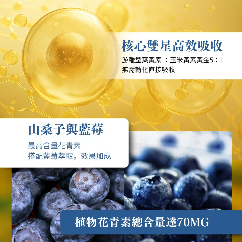 游離型葉黃素 玉米黃素 山桑子 花青素 維生素A 維持暗處視覺 最高單位 晶亮配方(3入組)