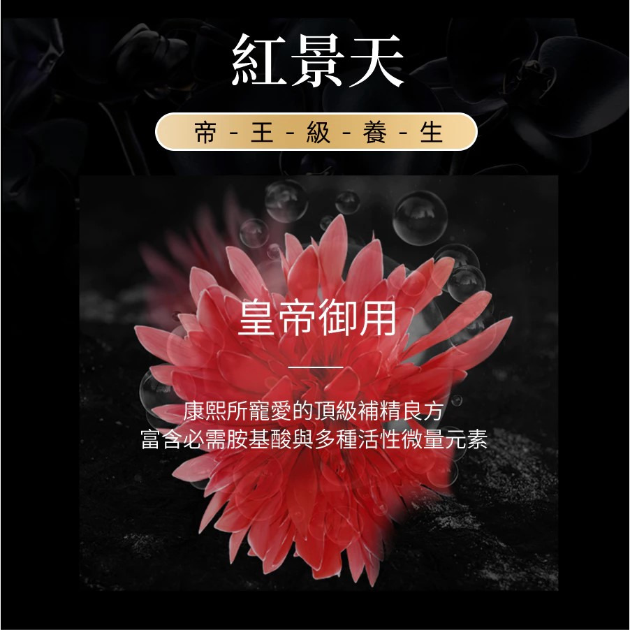 • 深色瑪卡精華:黑色與紅色瑪卡,含營養素最高,幫助增強男性體力與精力。