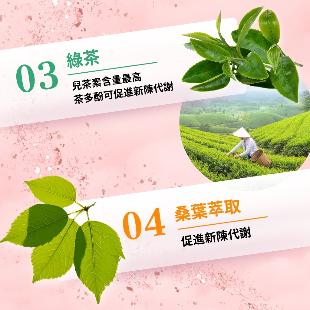 • 高濃度兒茶素與茶多酚,有助促進新陳代謝與脂質燃燒。