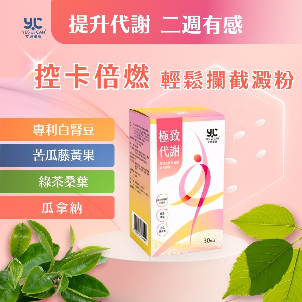 艾思維康 極致代謝 【 白腎豆 + 綠茶 + 藤黃果 】 義大利 專利 極纖複方 瓜拿納 桑葉 山苦瓜 促進 新陳代謝